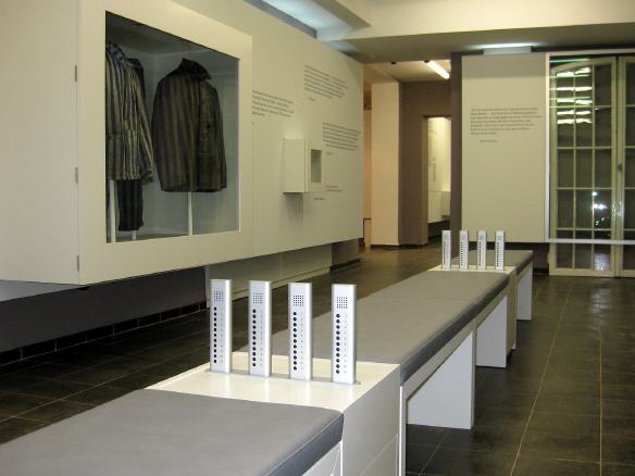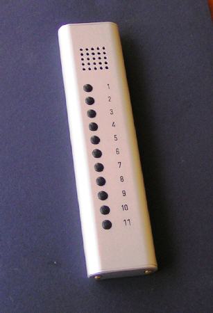 Die Auslösung der Tonstücke erfolgt über die am Einhandhörer angebrachten Tasten. Je nach Anzahl der Tonstücke, die abgerufen werden sollen, statten wir die Hörer mit 3 - 11 Tasten aus. Die Aufhängung erfolgt über einen Metallstift mit Kerbe.