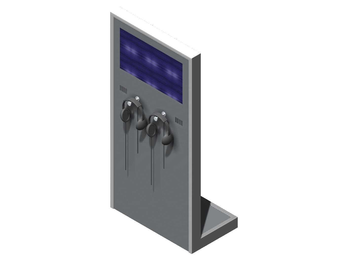 Diese Videostele ist mit einem senkrecht stehenden Bildschirm versehen. Sie eignet sich so insbesondere für kleinere Personen, Kinder und Rollstuhlfahrer.