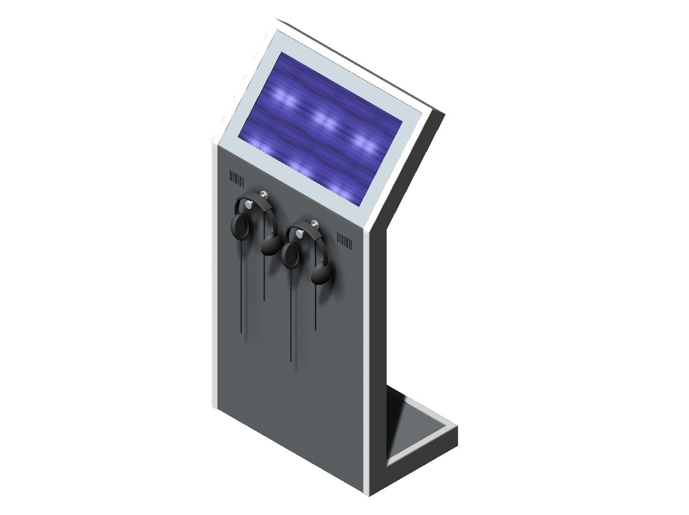 CAD-Zeichnung einer Videostele mit einem 21-Zoll-Monitor. Die Steuerung erfolgt über die berührungsempfindliche Oberfläche. Mit den heute verfügbaren modernen Videoplayer lassen sich ohne großen Aufwand interaktive Anwendungen programmieren. Mediaplayer sind weniger anfällig als PCs und eignen sich insbesondere für mobile Stelen. Hierzu liefern wir auch Transportbehälter, mit denen bei Wanderausstellungen ein sicherer Transport möglich ist. |